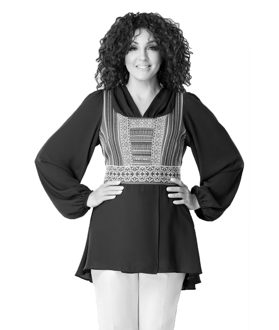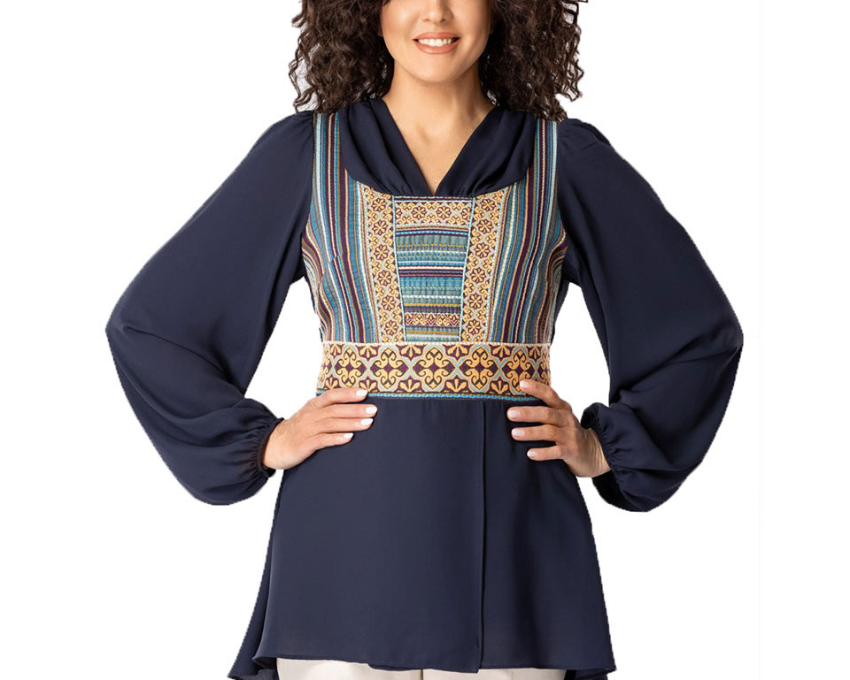 Bluza Stilizata Aramis este confectionata din viscoza fina si mix de jacquard etnic tesut.