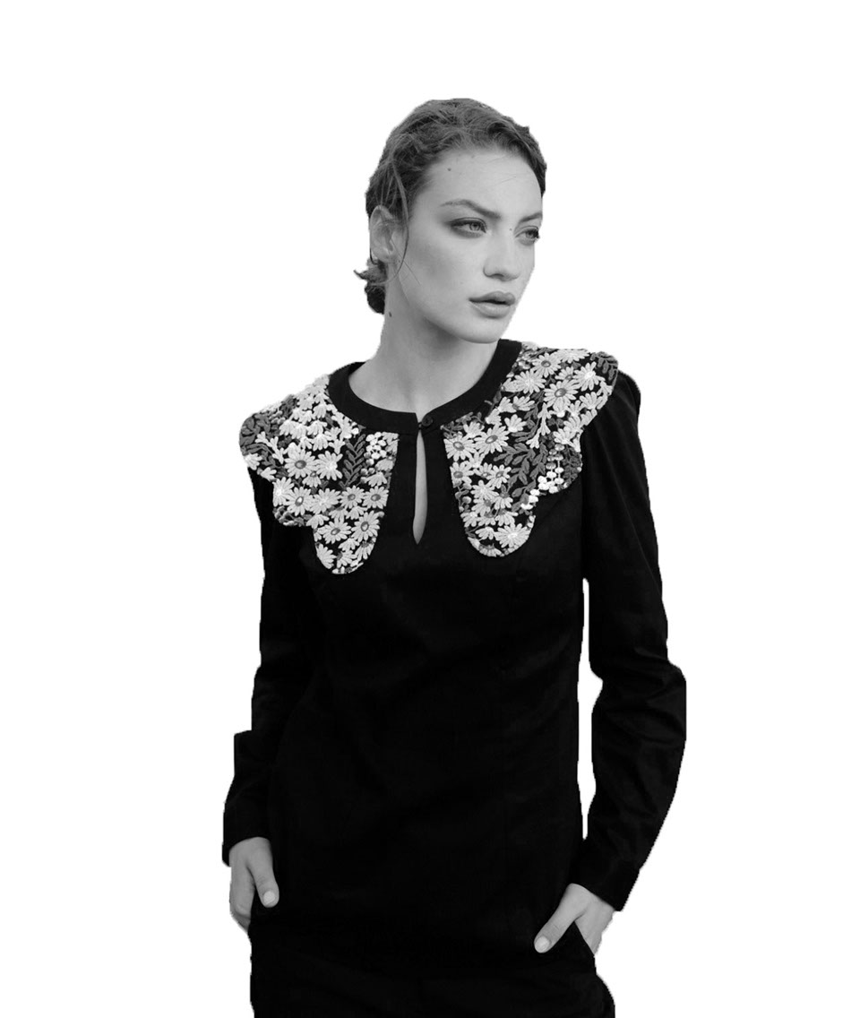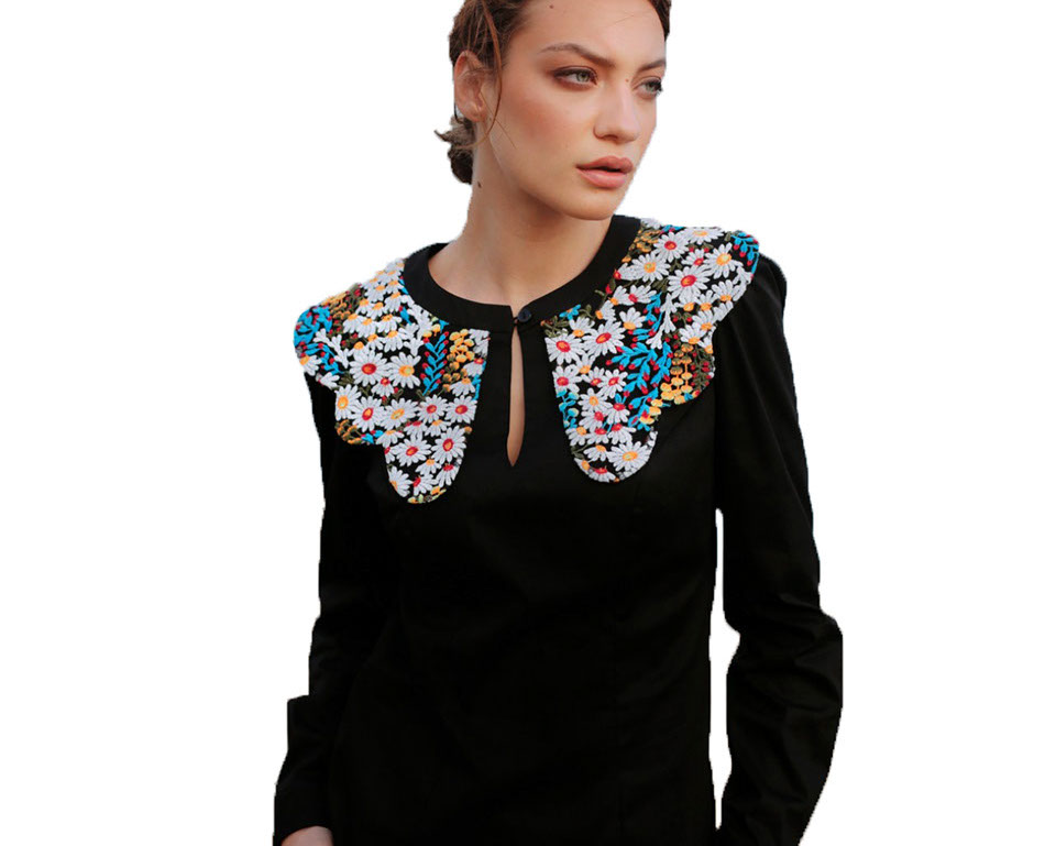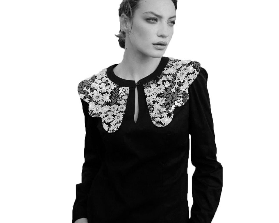 Bluza brodata Rococo este inspirata de rafinamentul modei din secolul XVIII imbinat cu gratia bluzei romanesti arhaice.